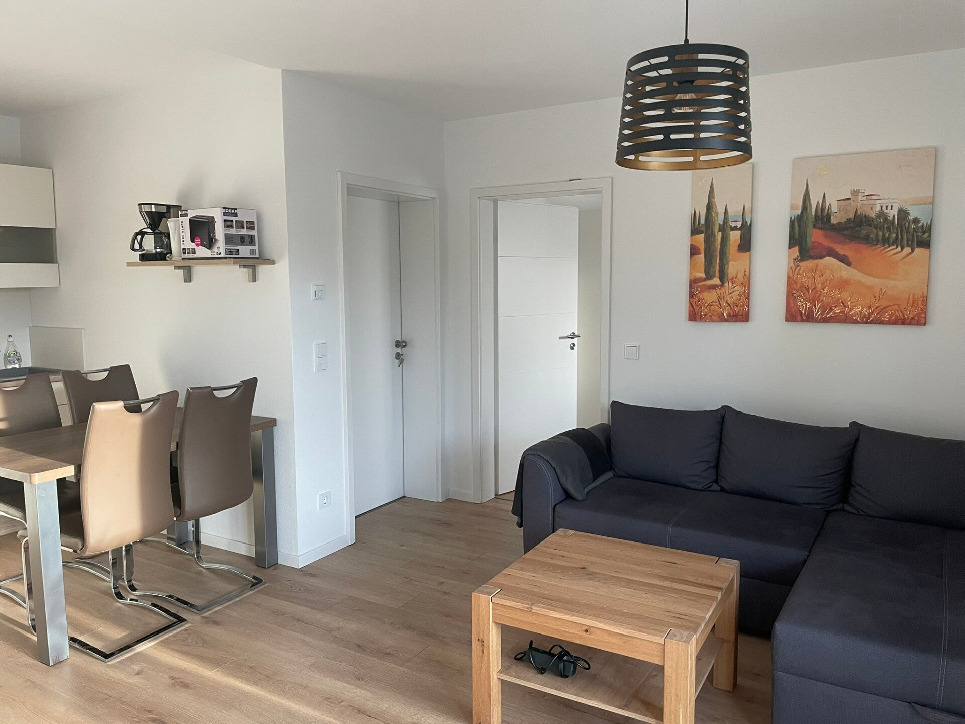 Wenn Sie drei Ausstattungsmerkmale nennen müssten, die unseren Gästen am meisten gefallen, wären es die großzügige Terrasse für entspannte Stunden im Freien, der einladende Wohnbereich, der auch eine zusätzliche Schlafmöglichkeit auf der ausziehbaren Schlafcouch bietet, und das wellnessartige Badezimmer. Dieses moderne Bad mit großzügiger Dusche ist nicht nur ein Ort zum Wohlfühlen, sondern auch praktisch mit einer Waschmaschine ausgestattet. Selbstverständlich gehört auch ein komfortables Schlafzimmer mit Doppelbett und großem Kleiderschrank zu Ihrer Ausstattung.